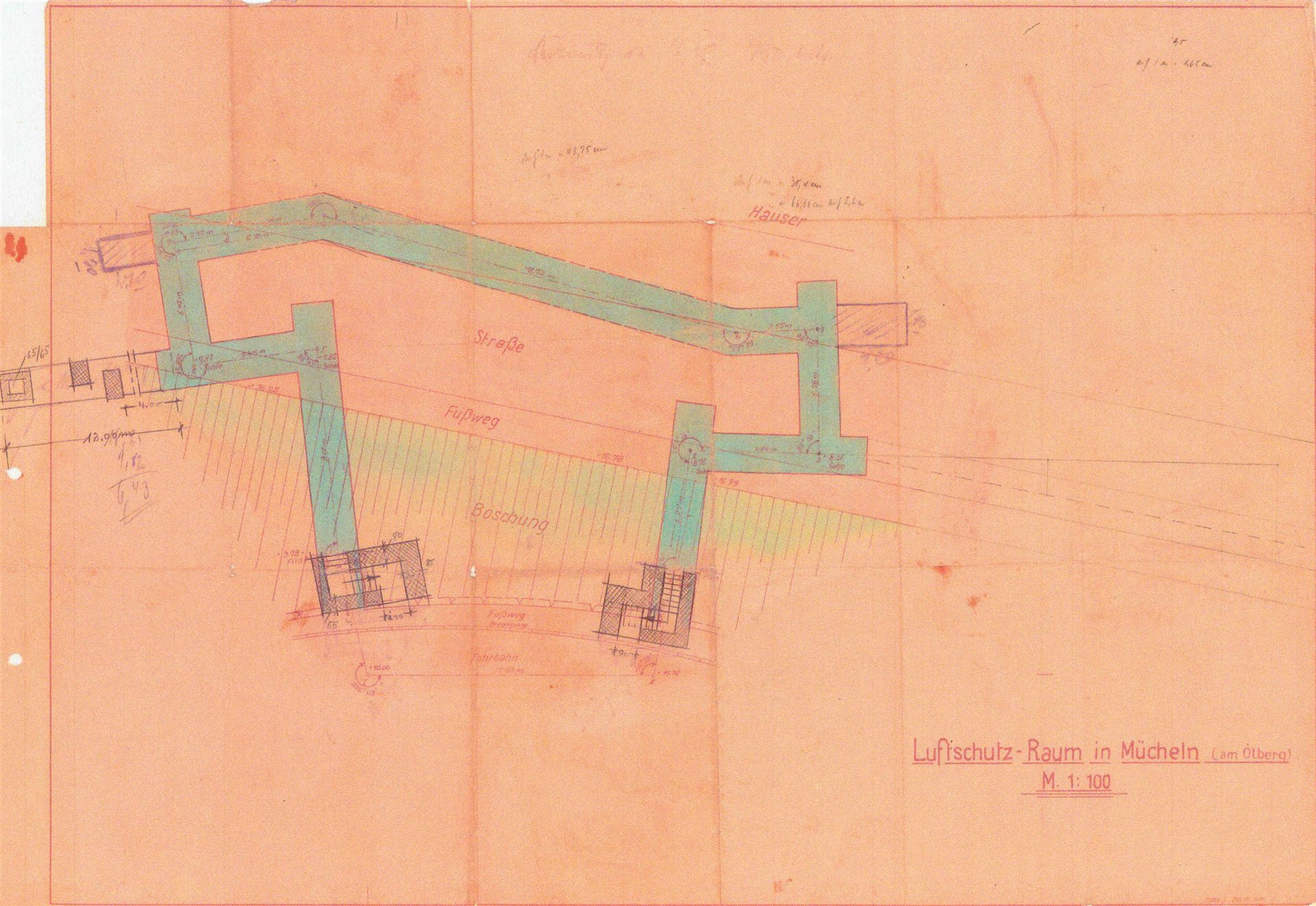 15. Schützenhaus (Garten) Befehlsbunker, 2 Eingänge 1 Verbindungsstollen Schützenplatz