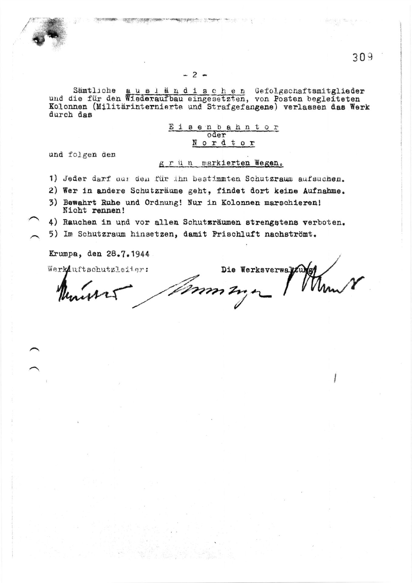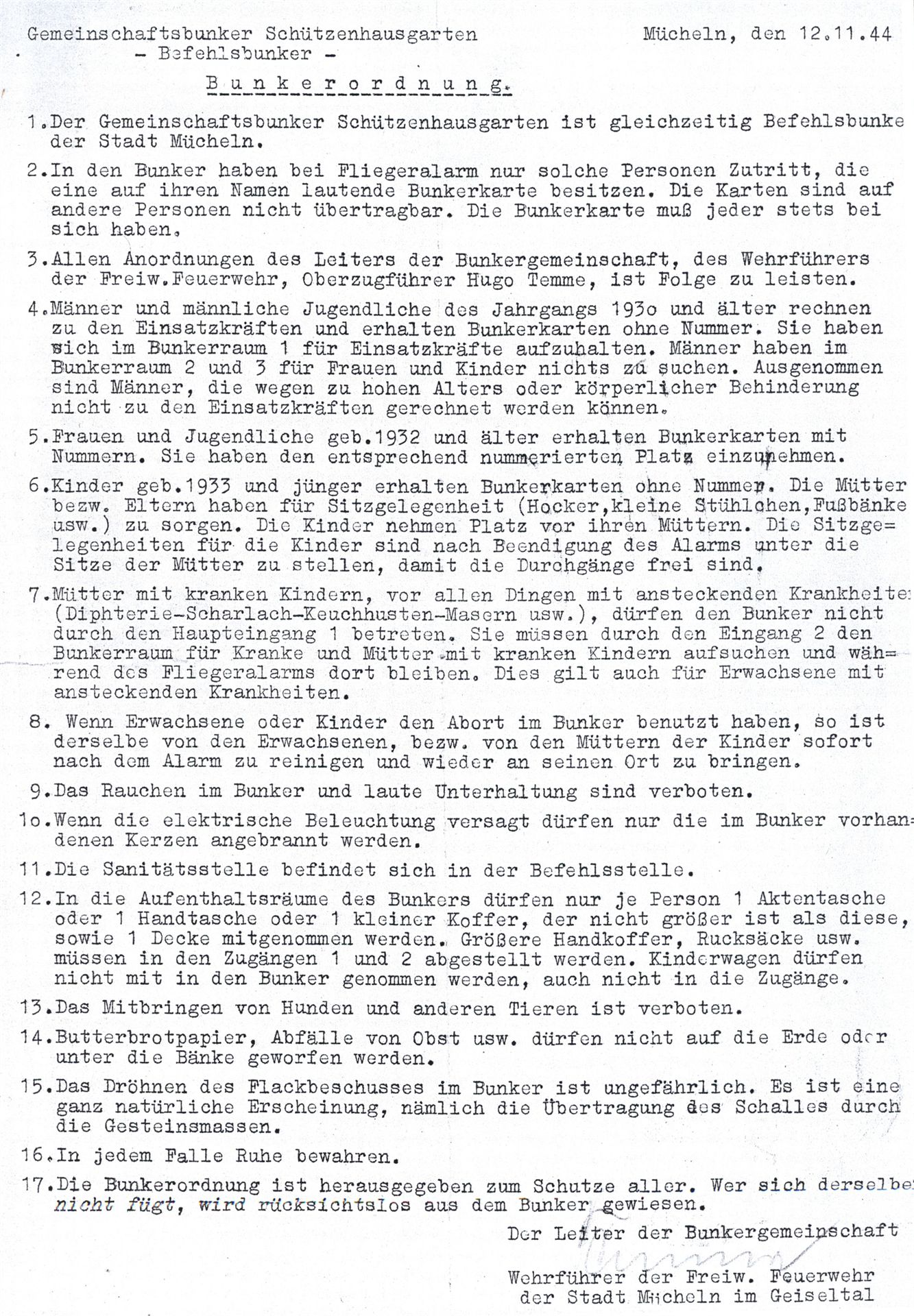 Mit der Führerweisung vom 10. Oktober 1940 kam es zu einem Luftschutz- Sofortprogramm im Bunkerbau für die Zivilbevölkerung. Dieser Weisung betraf Großstädte mit einer Einwohnerzahl von über 100 000 Personen, die als luftgefährdet galten und kriegswichtige Rüstungsbetriebe aufwiesen. Merseburg und Leuna wurden in dieses Programm explizit mit aufgenommen.