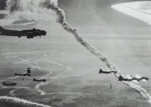 "Dies war der Beginn eines Angriffes auf dt. Ölanlagen und eines der größten Anstrengungen der 8. USSAF Air Force bis zu diesem Zeitpunkt. Die Gruppe wurde durch Maj. Fred Spencer geführt. Das Wetter war sehr gut, aber das Ziel war verdeckt durch Rauch und Bodendunst zum Zeitpunkt als die 457th über der Raffinerie eintraf. Keine feindlichen Flugzeuge waren zu sehen. Flak war mäßig, aber präzise. Elf Flugzeuge erhielten nachhaltige Schäden und die 8.USSAF Air Force hatte an diesem Tag einen totalen Verlust von 42 B-17 Maschinen. Auf dem Heimweg blieb Nr.:42-31607 "Rose Olive" durch Ausfall zweier Motoren hinter der Formation zurück. Die Besatzung stieg aus."