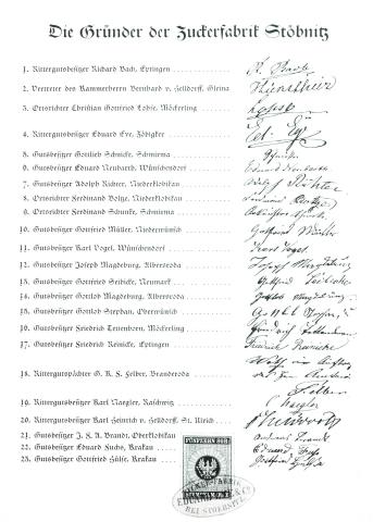 Belegt ist, dass Karl Heinrich von Helldorf am 17. Juni des Jahres 1864 mehrere Gutsbesitzer der Gegend zu einem Gespräch in sein Schloss auf St. Ulrich einlud, um mit ihnen über "...ein Projekt in hiesiger Gegend..." zu sprechen. Man wurde sich schnell einig und so wurde bereits am 25. September 1864 im Königlichen Handelsregister des Kreisgerichtes Querfurt die "Zuckerfabrik Eduard Eye & Kompagnie b. Stöbnitz" eingetragen. Der Name "Eduard Eye" resultiert daraus, dass keiner der Herren zu erst seinen Namen für die Firmenbezeichnung hergeben wollte, bis Eduard Eye einlenkte. Offizieller Beginn der OHG war der 1. Juli 1864 mit insgesamt 23 Gesellschaftern und einem Stammkapital von 72518 Talern das in Raten ein zu zahlen war. Im Oktober 1864 begannen bereits die Ausschachtungsarbeiten auf dem erworbenen Gelände in Stöbnitz. Man begann anschließend mit dem Bau der Gebäude, die jedoch durch den einsetzenden Winter erst im Februar 1865 weiter gebaut werden konnten. Bemerkenswert bei den Bauarbeiten war, dass man bei der Abteufung eines Brunnens auf dem Gelände der Zuckerfabrik nach ca. 36 m Tiefe immer noch nicht die Kohle führende Schicht durchbrochen hat. Dies scheint somit eines der ersten Belege für die Mächtigkeit der Kohle im Geiseltal gewesen zu sein.