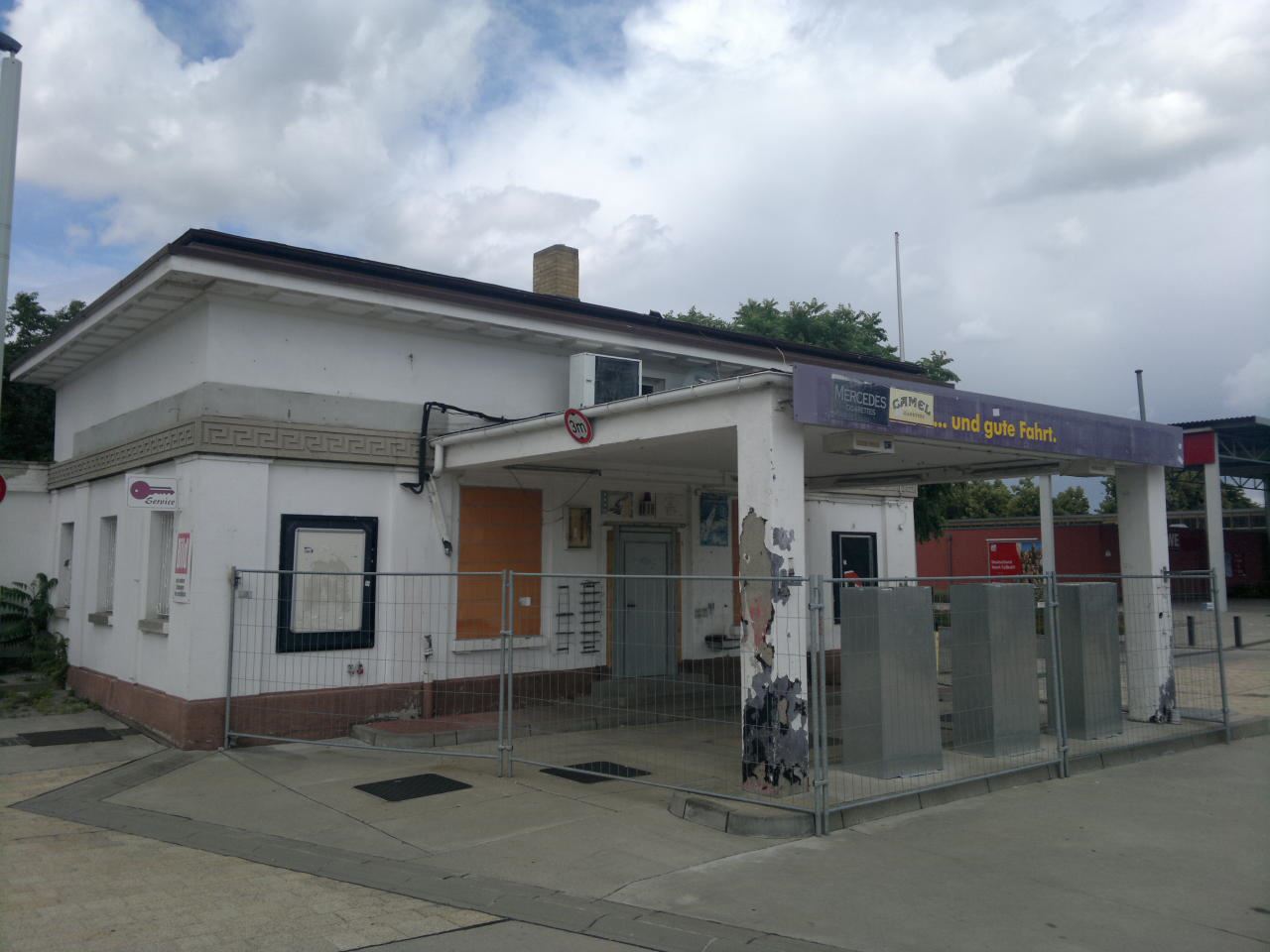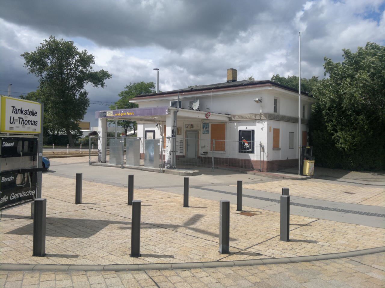 Am 20. Juli 1944 bekam das Gebäude leider einen schweren Bombentreffer und wurde 1950 wieder aufgebaut und wieder als Tankstelle betrieben, nunmehr von "Minol". Es überstand als Tankstelle auch die Wendewirren, nunmehr zu "Elf" gehörend und wurde immerhin noch bis 2007 als solche genutzt. Seitdem gerät es - mangels sinnvoller Nutzung - immer mehr in Vergessenheit und fristet ein eher vernachlässigtes Dasein, was bekanntermaßen die stete Gefahr des Zerfalls und nachfolgend des Abrisses in sich birgt.