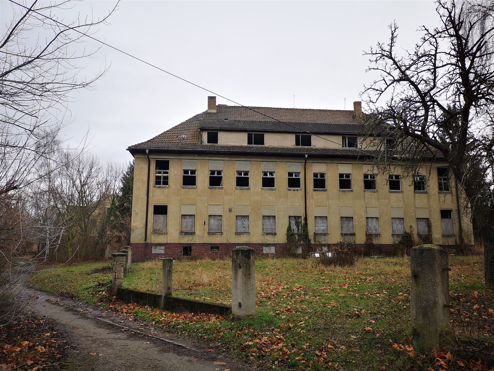 Direktionswohngebäude, Wohnblock (links), Verwaltungsgebäude (im Hintergrund)