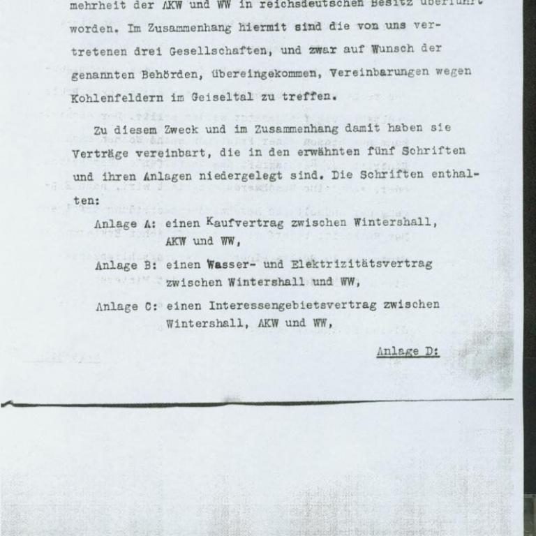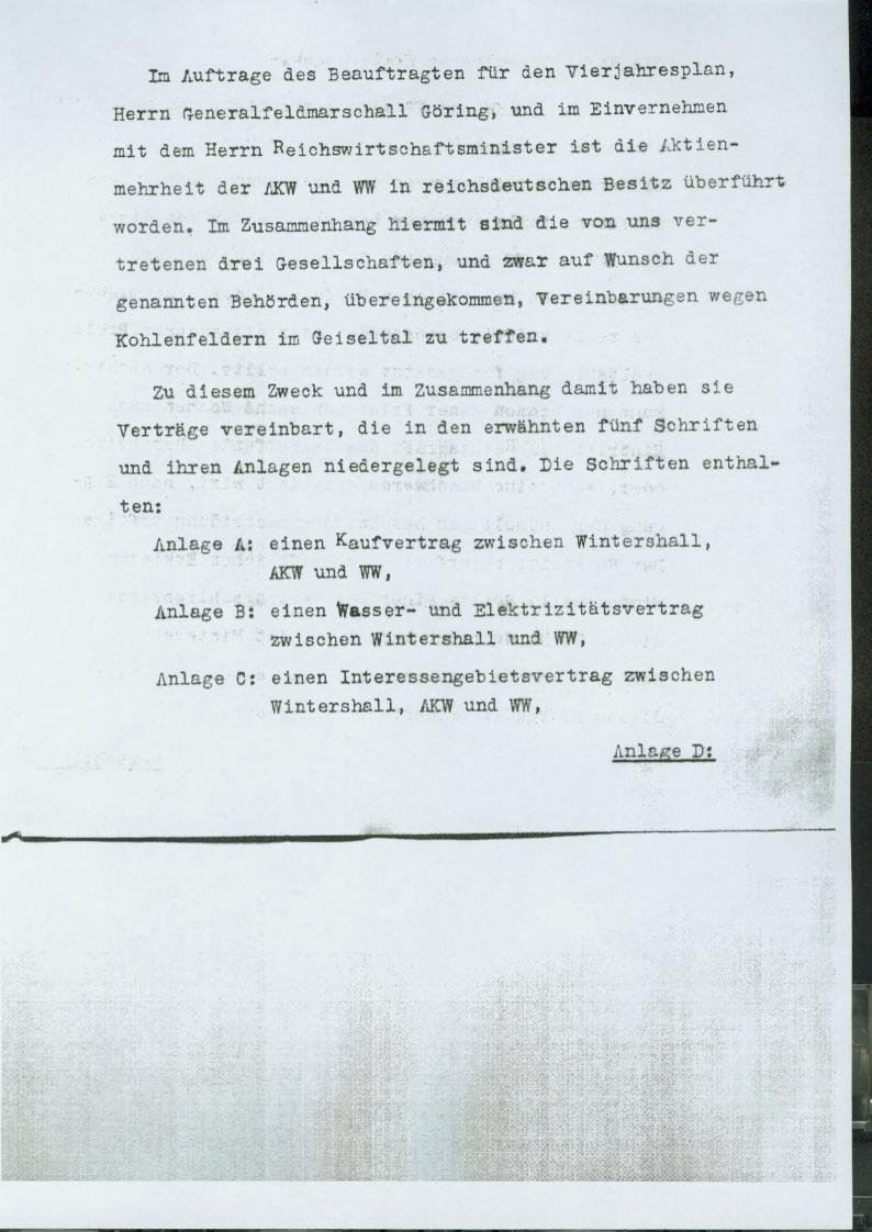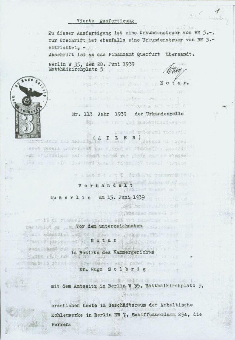 Für eine Gesamtsumme von insgesamt 32.584.230,30 RM wird die Grube Cecilie und die Brikettfabrik der Grube Emma im Geiseltal von Flick an die Wintershall A.G. verkauft. Dieses soll den Kohlebedarf der Fischer- Tropsch Anlage im Treibstoffwerk Lützkendorf abdecken.