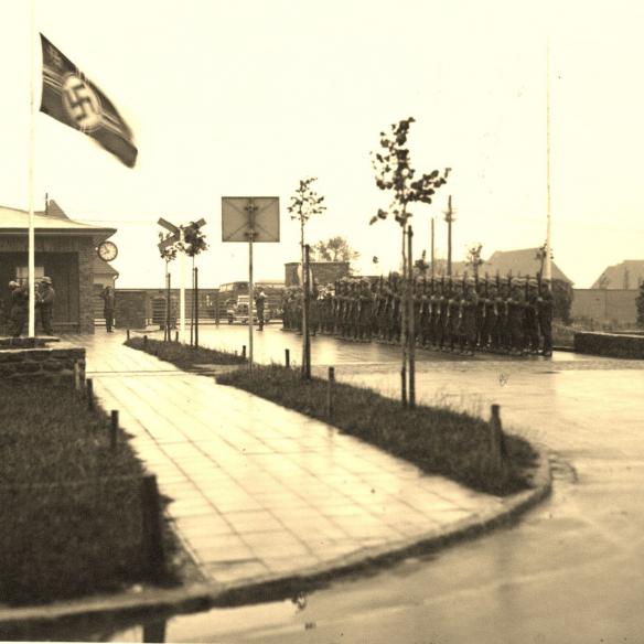 Mit der Errichtung weiterer chemischer Werke in Mitteldeutschland durch den Vierjahresplan, rückte die Frage des Objektschutzes in den Mittelpunkt militärischer Überlegungen. So entschied man sich für einen Ausbau, für den bereits seit 1925 teilweise vorhandenen Flugplatz Merseburg. In den Jahren 1934/ 35 errichtete dazu die Firma Philipp Holzmann mehrere Flugzeughallen im Auftrag des Reichsluftfahrtsministerium Berlin, sowie weitere Gebäude. Die Einweihung des Flugplatzes erfolgte im Jahr 1935 durch Reichsluftfahrtminister Hermann Göring. In der neu gegründeten Fliegergarnision "Manfred von Richthofen" wurde am 1. Oktober 1935 das Kampfgeschwader 153, unter der Führung von Oberstleutnant Walter Schwabedissen, aufgestellt. In den folgenden Jahren bildete man Piloten aus, die zum Teil ihre ersten Kampferfahrungen im spanischen Bürgerkrieg (1936-1939) bei der Legion Condor erlangten.