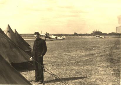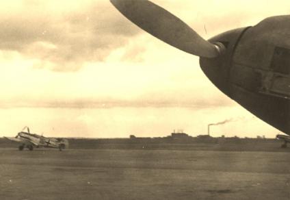 1939 verpachtete man Teile des Flugplatzes an die Junkers- Werke in Dessau, die darauf ihre Aussenstelle in Merseburg einrichteten. Der Objektschutz für die chemischen Werke übernahm der 20 Km entfernte Feldflugplatz in Schafstädt. In 3 der 5 Flugzeughallen begann man mit dem Bau und der Erprobung der Flugzeuge. Für die Erprobungsmannschaften wurden Teile der Kaserne zur Verfügung gestellt. Nachdem Mitte September 1940 die Operation "Seelöwe" verschoben wurde, erhielten Messerschmitt und Junkers die Aufgabe einen Großraumlastensegler für das Luftfahrtministerium zu entwickeln. Zu der gestellten Aufgabe kam hinzu, das Junkers ihr Projekt komplett aus Holz fertigen sollte. Dazu wurden sämtliche holzverarbeitende Betriebe und Tischler aus Merseburg und Umgebung dienstverpflichtet. Kurz vor dem Jungfernflug des Ju 322 "Mammut" besuchte Ernst Udet die Konstuktion in Merseburg und äusserte sich skeptisch über dieses 82m (Spannbreite) lange Flugzeug. Er sollte Recht behalten, denn die schlechten Flugeigenschaften machten das Flugzeug sehr instabil. Da Junkers diese Instabiltät nicht beheben konnte, entschied man sich für das Messerschmitt- Projekt "Gigant" und stampfte den Prototypen und weitere im Bau befindliche Großraumsegler Ju 322 der Junkers- Werke ein. Junkers fertigte und erprobte noch bis zum Ende des Krieges in Merseburg.